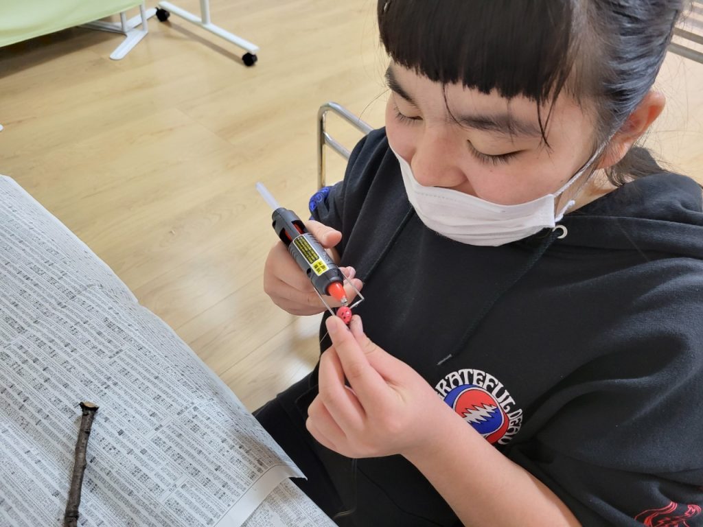 拾ったどんぐりや枝を見て「何を作ろうか」とイメージを膨らませている芸術家たち。