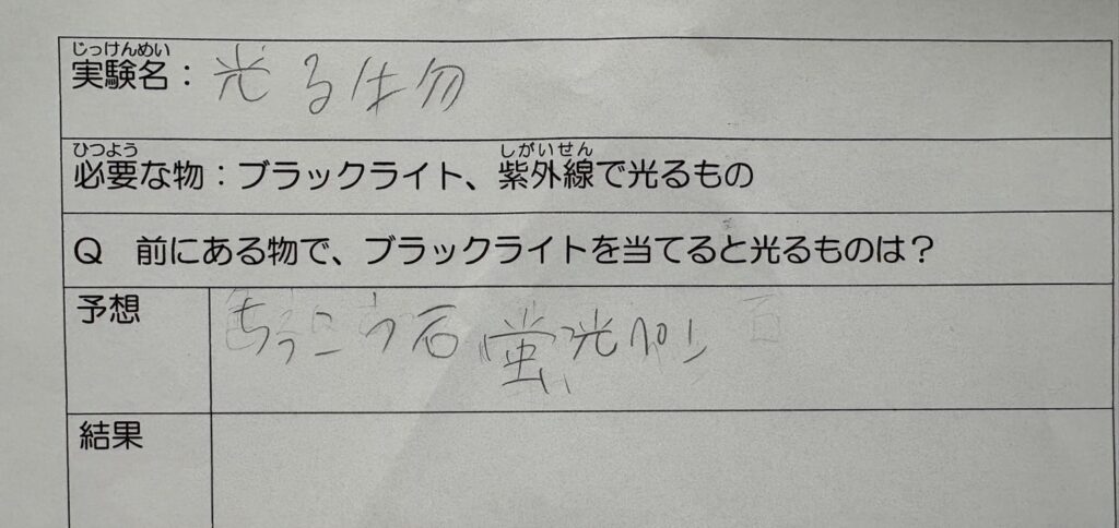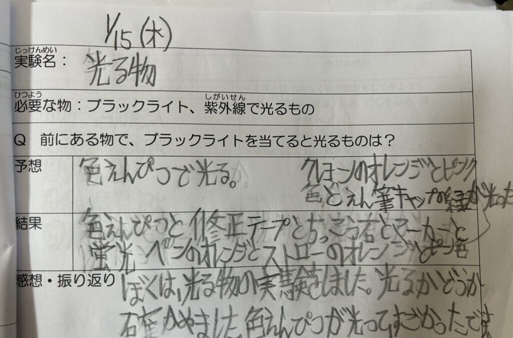 「こんなにも色々なものが光ると初めて知った。家でもやってみたい!」と嬉しそうに話していました。