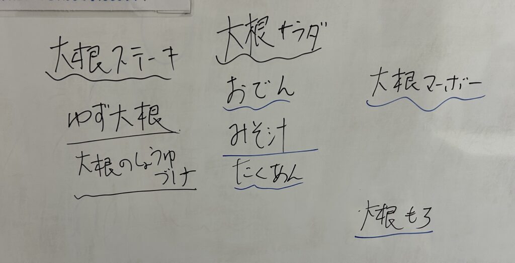 「おでん」「味噌汁」など色々な意見が出ましたが、今回は、大根餅と大根ステーキに決定!